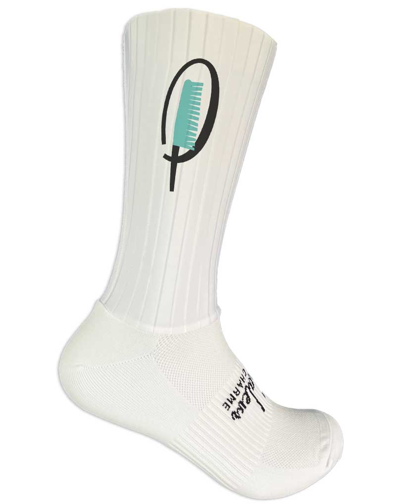 Met deze klassieke witte aerosokken ga jij perfect gesoigneerd de weg op. Want misschien ben je niet in staat om grote koersen te winnen, met deze aerosokken bespaar je kostbare watts en maak je dus wel meer kans en je ziet er geweldig uit!